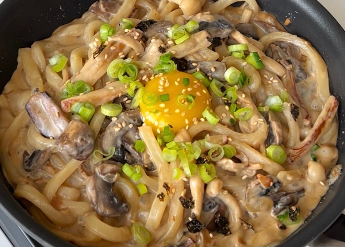 This dish is an Asian fusion creation, inspired by both Japanese and Italian cuisines. If you love udon soup and carbonara pasta, you’ll certainly love this dish. And the best part? You only need a variety of simple ingredients to create this restaurant-quality dish in your own kitchen!