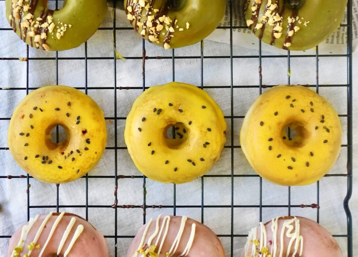 The donuts can be topped with anything you prefer, but I decorated my donuts with 3 natural flavors: matcha, strawberry, and lemon. The donuts are beautiful and delicious, making them ideal for gifting!