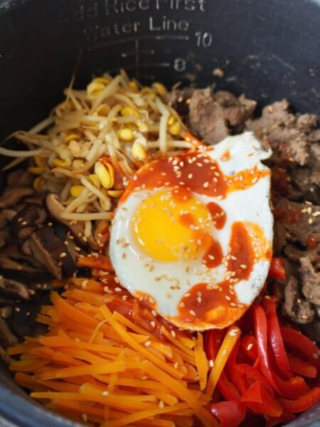 This rice cooker bibimbap is the only dish you’ll have to make lunch or dinner because it’s a fully balanced meal, rich in flavor and packed with a variety of vitamins and minerals.